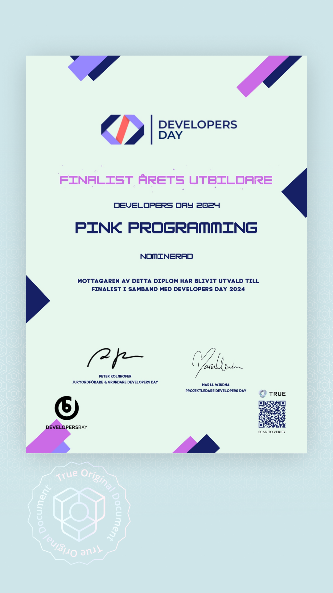 Du har tilldelats denna utmärkelse då du har utsetts till vinnare på Developers Day 2024!